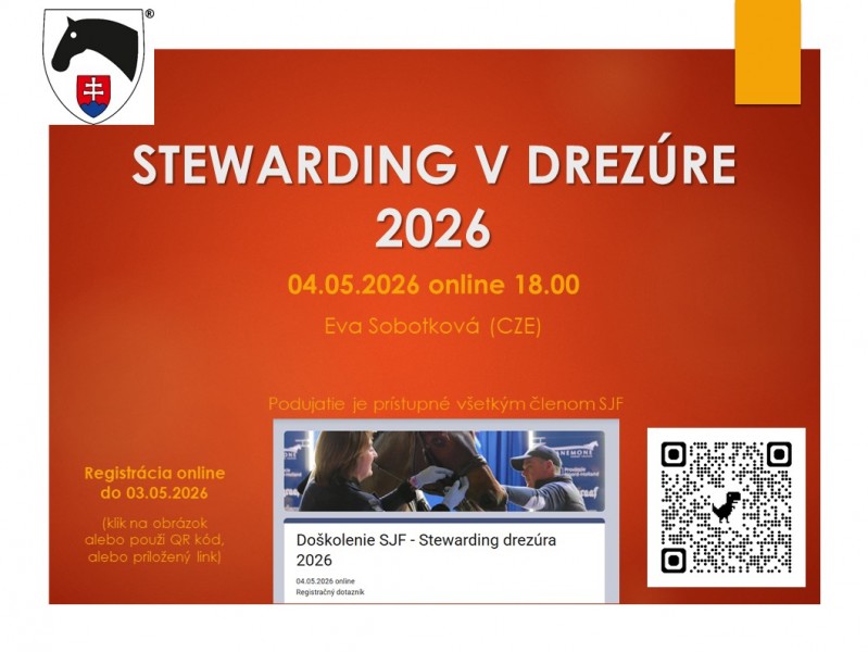 Prosíme záujemcov o absolvovanie vzdelávacieho kurzu drezúrneho rozhodcu a drezúrneho stewarda, aby sa registrovali prostredníctvom registračného dotazníka najneskôr do 20.3.2024.